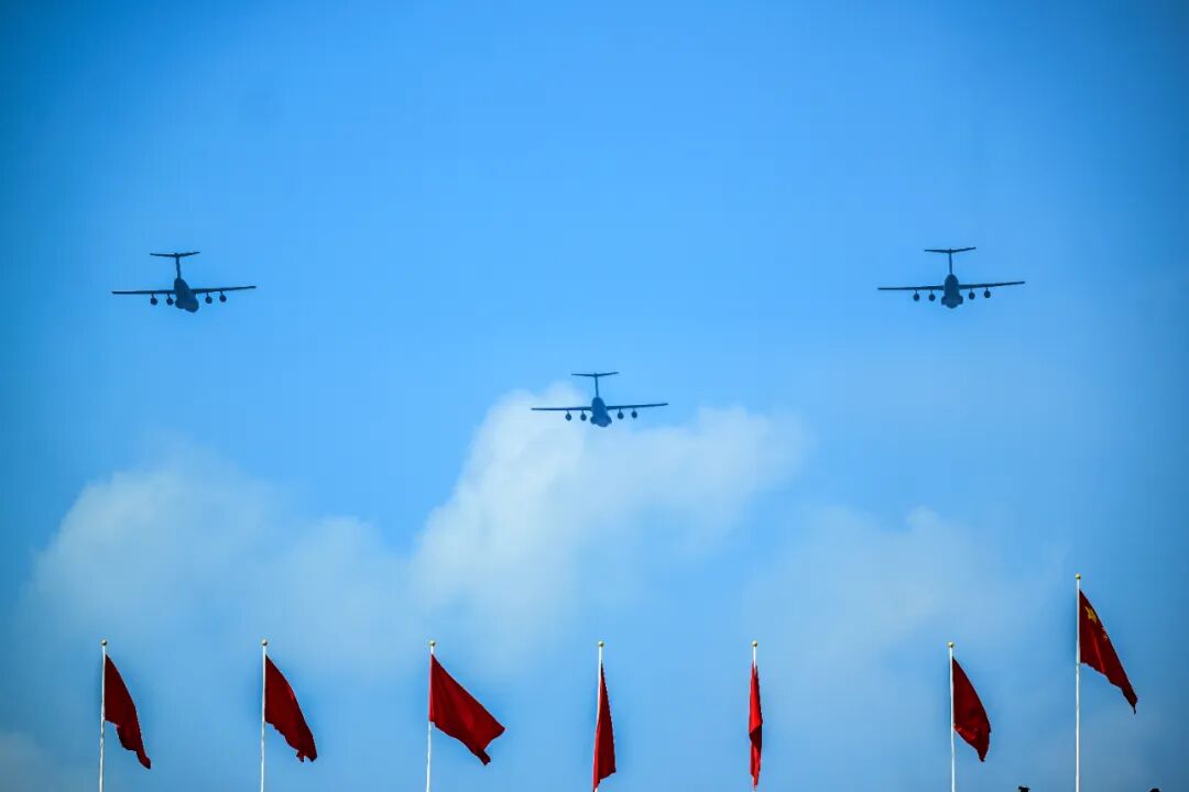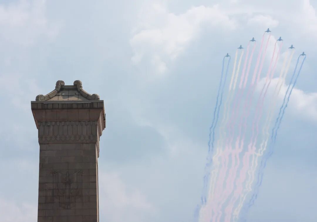 空中护旗梯队飞过天安门广场上空。纪念中国人民抗日战争暨世界反法西斯战争胜利80周年大会在北京隆重举行。这是歼击机梯队接受检阅。这是空中护旗梯队飞过天安门广场上空。纪念中国人民抗日战争暨世界反法西斯战争胜利80周年大会在北京隆重举行。纪念中国人民抗日战争暨世界反法西斯战争胜利80周年大会在北京隆重举行。新华社记者单宇琦 摄9月3日,新华社记者张宏祥摄